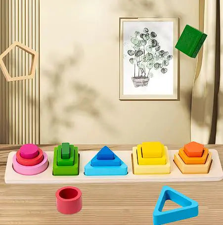 Wooden Stacking Blocks – Montessori Toy for Shape, Color, and Sorting Skills