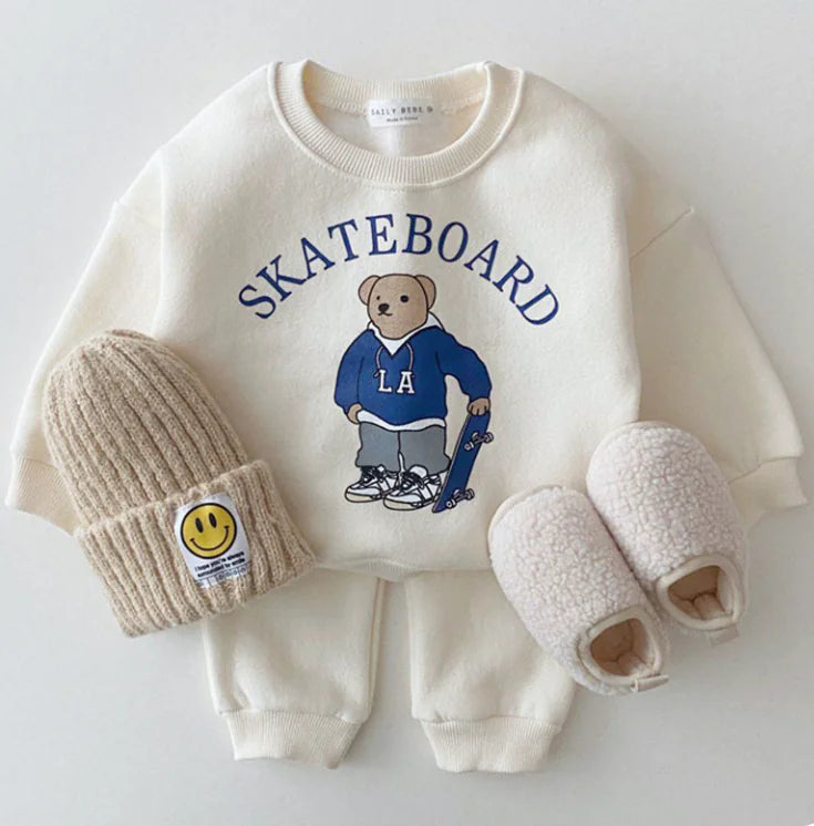 Casual Baby Bear Graphic Cotton Tracksuit Set for Boys